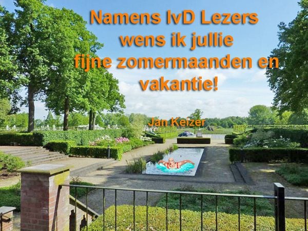 Hoi. Wij wensen iedereen een heel fijne, warme vakantie toe. geniet van de zon, hoop ?? Lekker bruin "bakken". Duimen voor de prachtige weer!!!! Ook voor iedereen, die op reis gaat, een goeie reis met de vliegtuig of met de auto ( retour, terug naar huis, wel thuis). Doei!!!!!!!!!!